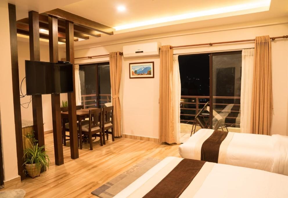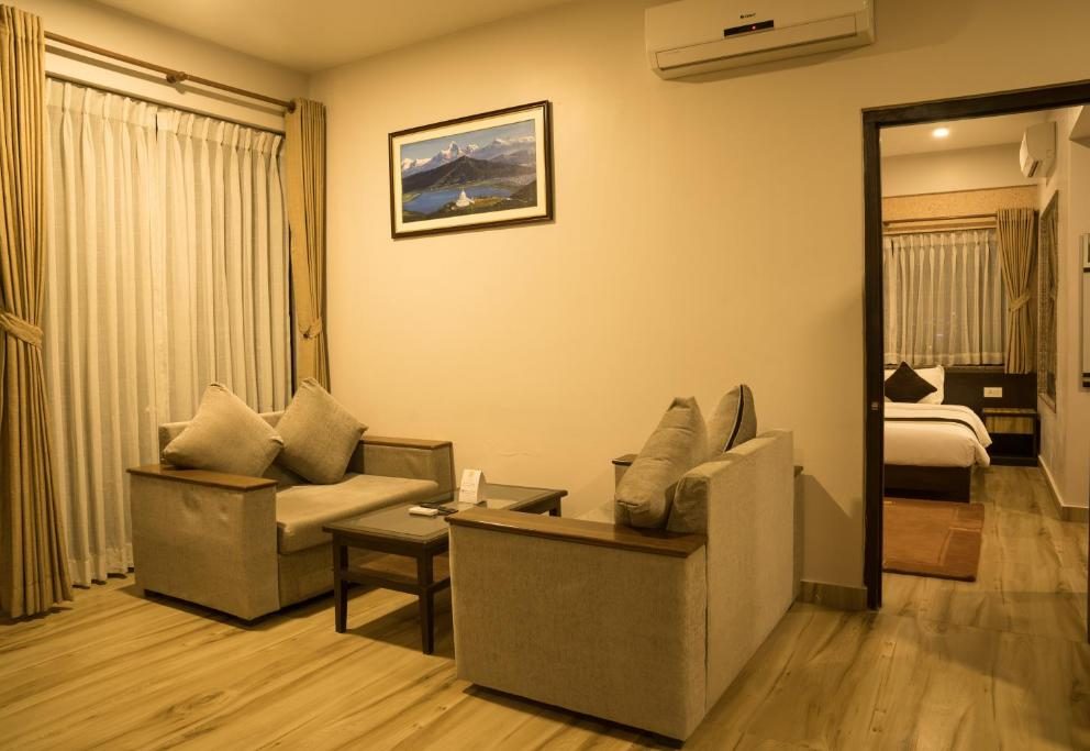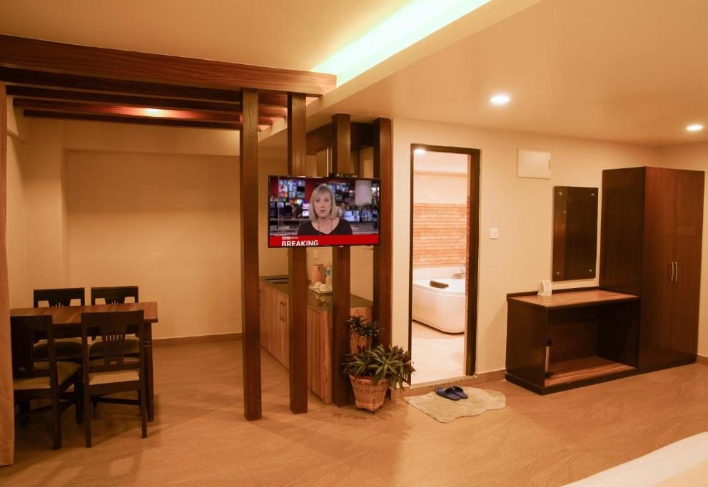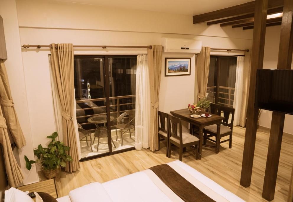Uniquely carved the beautiful Presidential Suite offers you with the private reception, meeting room, dining, Private Jacuzzi and wonderful Fewa lake and Himalayas view.